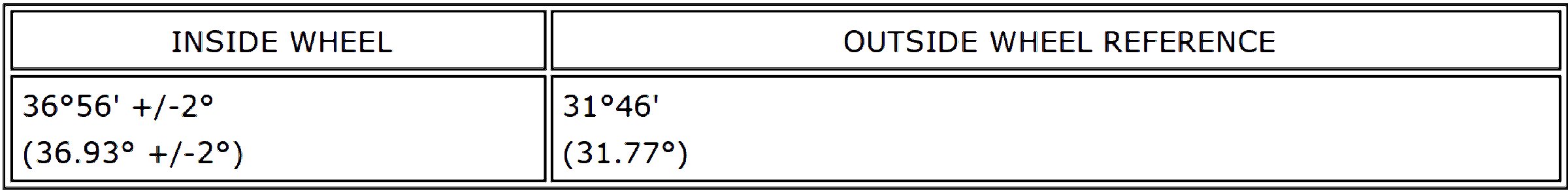 Standard Steering Axis Inclination (Unloaded Vehicle):