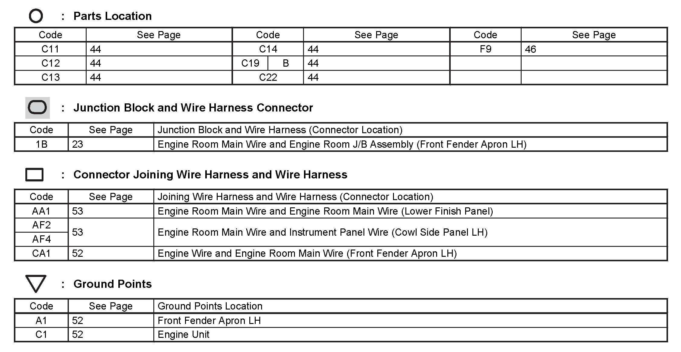 Locations: The locations of components, connectors, ground points, and splices referred to within these diagrams can be found at Vehicle Locations. Locations