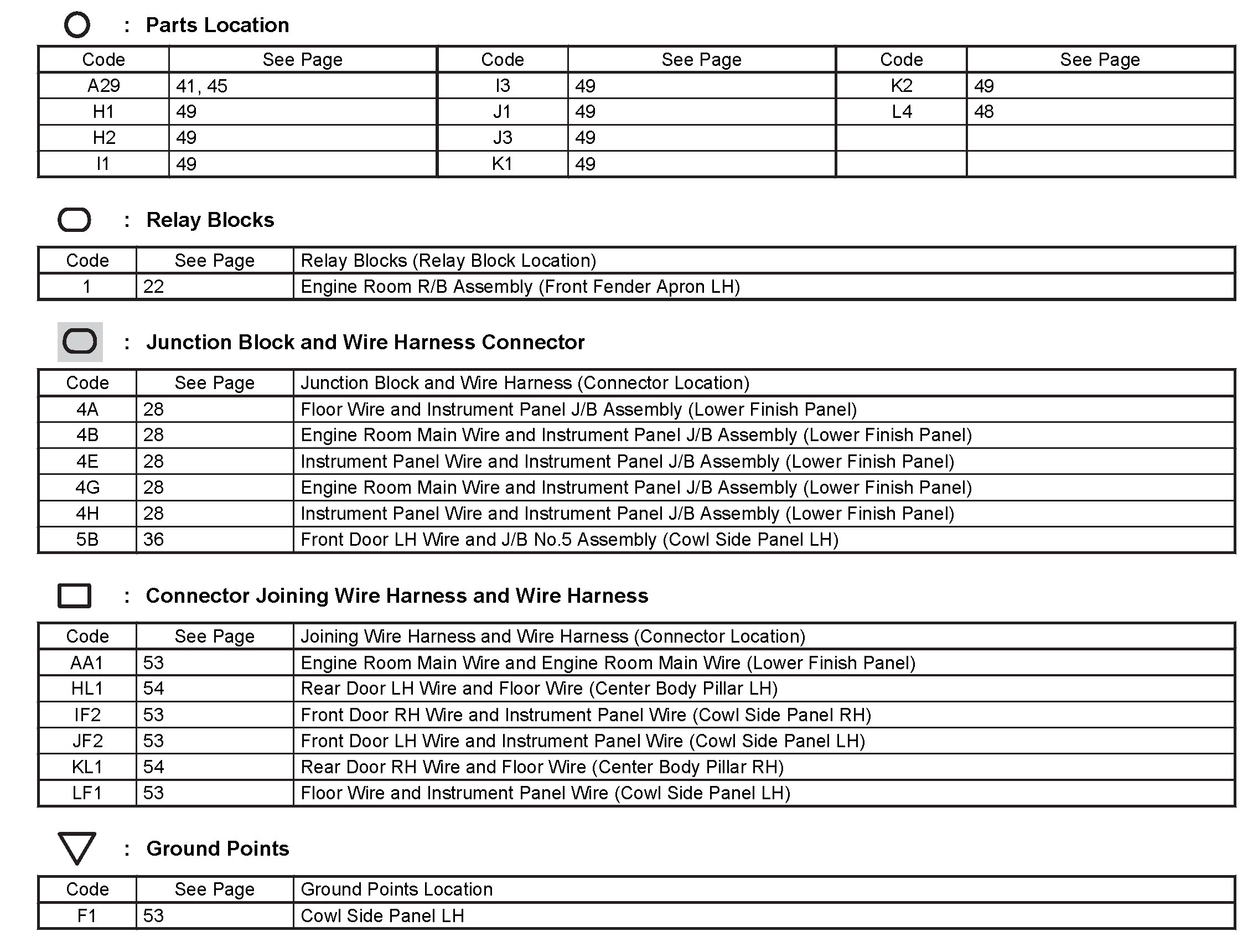 Locations: The locations of components, connectors, ground points, and splices referred to within these diagrams can be found at Vehicle Locations. Locations