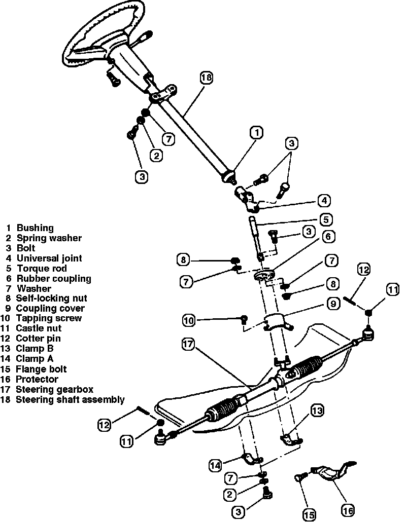 Steering Column Exploded View W/Manual Steering