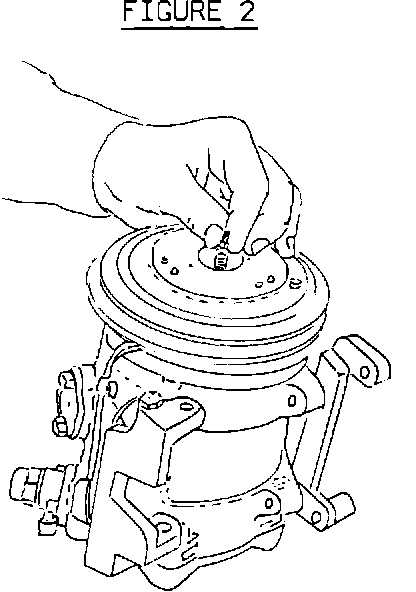 3. The clutch hub puller (SOA 624 880), can be used to remove the clutch hub. However, it will be necessary to place a small capscrew (8 mm hex head) on the compressor shaft before installing the tool. This will ensure that the clutch hub is pulled completely off of the compressor shaft. (See Figure 2).