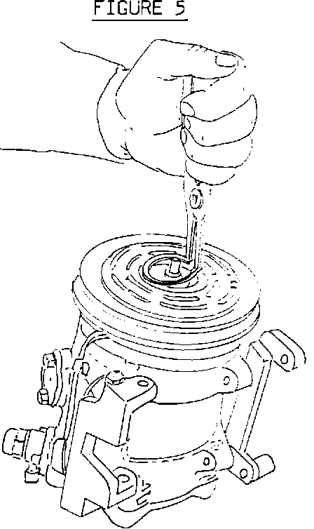 5. Carefully remove the adjusting shims from the compressor shaft. Note that the same amount of shims must be reinstalled on the compressor shaft before re-installation of the clutch assembly. (See Figure 4).