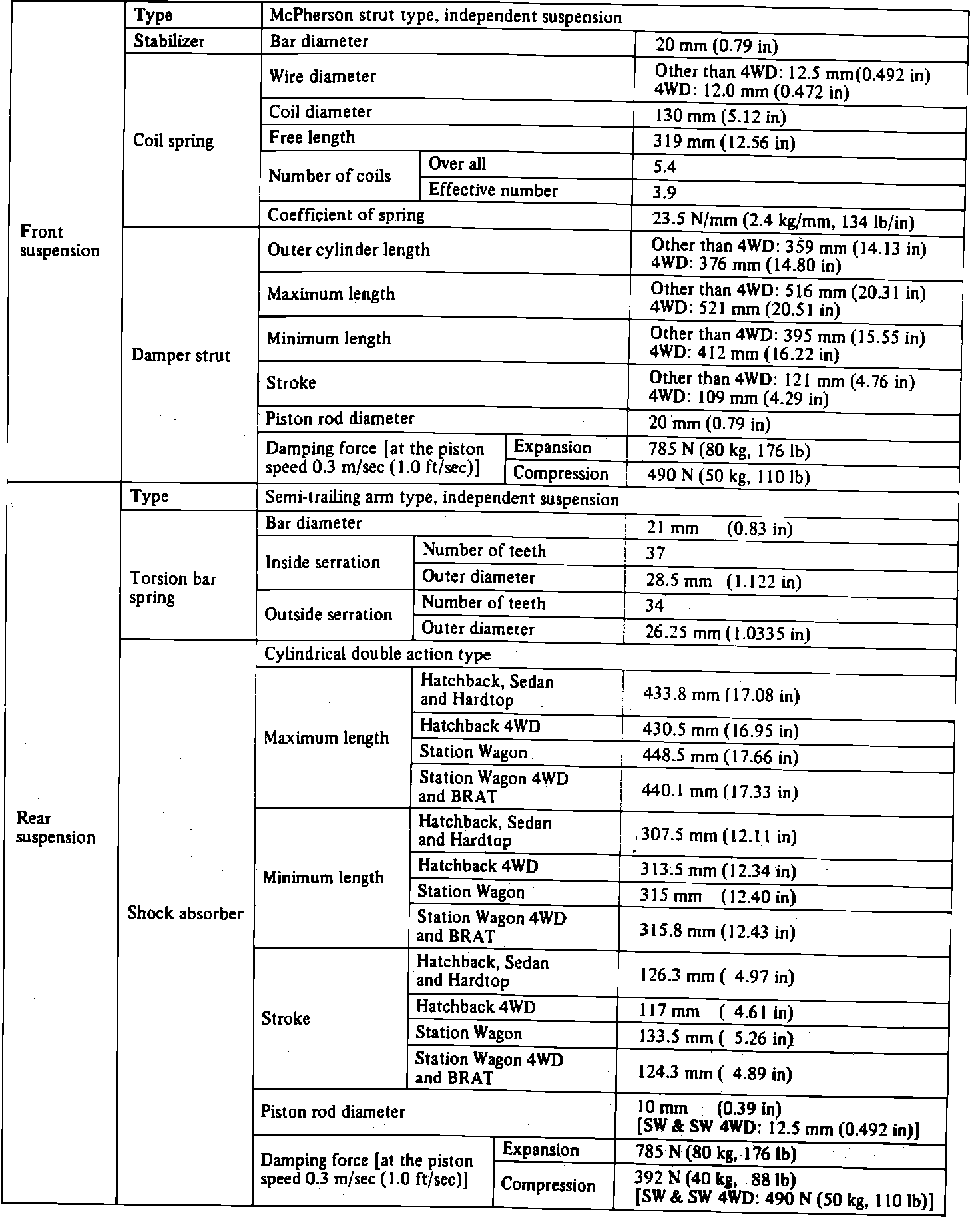 Suspension Specifications: