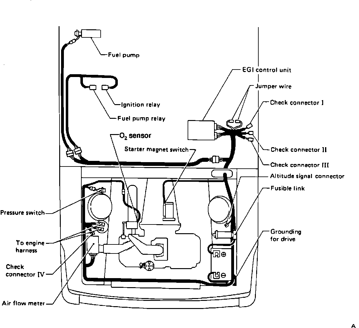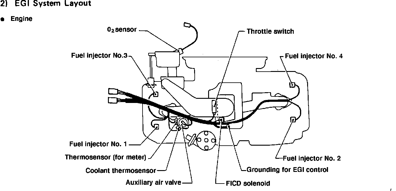 Fig.38 EGI system layout-interior and engine compartment.: