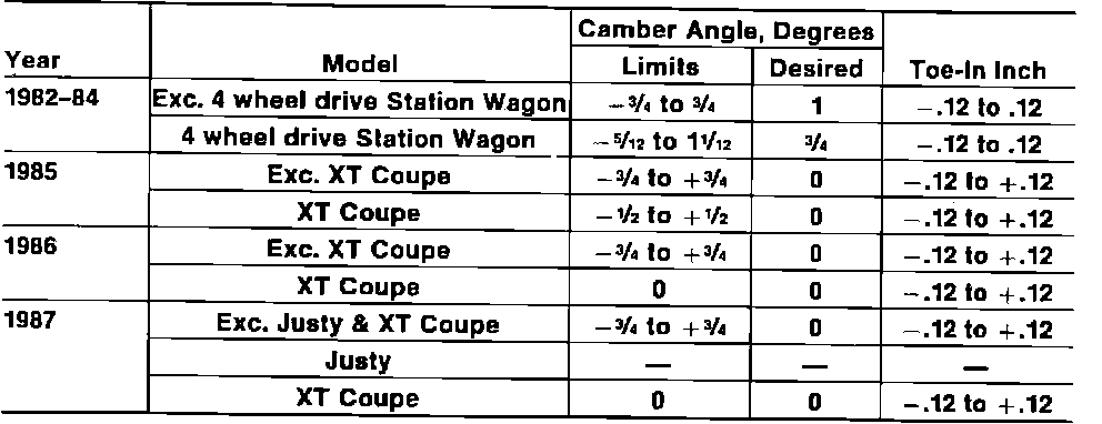 Rear Wheel Alignment Specifications