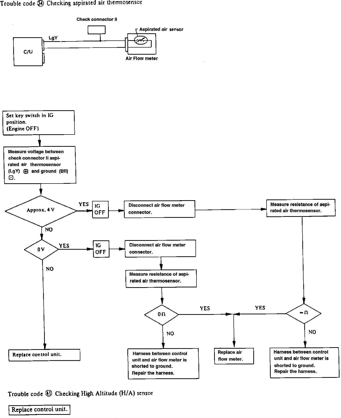 Fig.16 EGI system troubleshooting chart. Trouble code 34. Checking aspirated air thermosensor.: