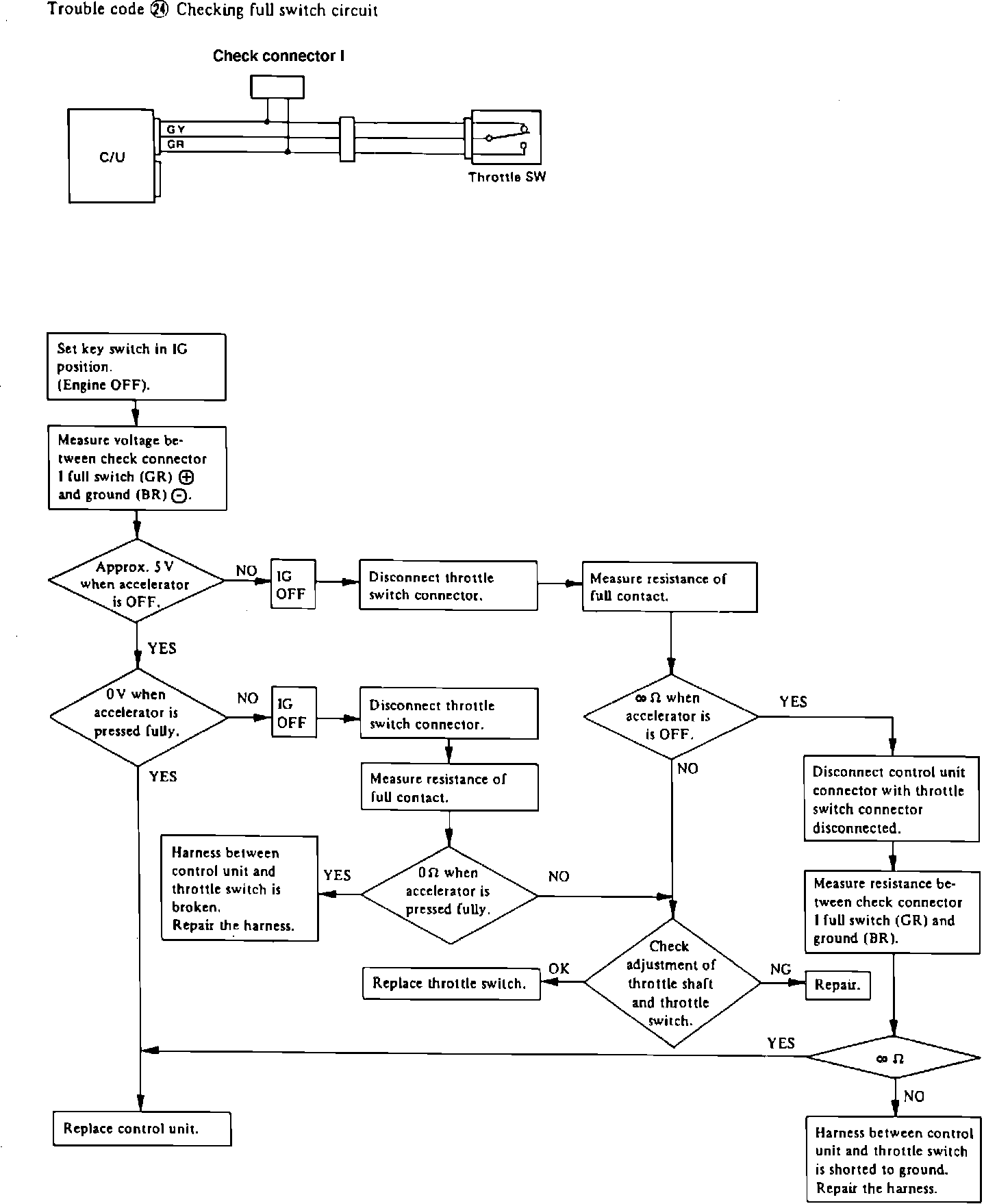 Fig.12 EGI system troubleshooting chart. Trouble code 24. Checking full switch circuit.: