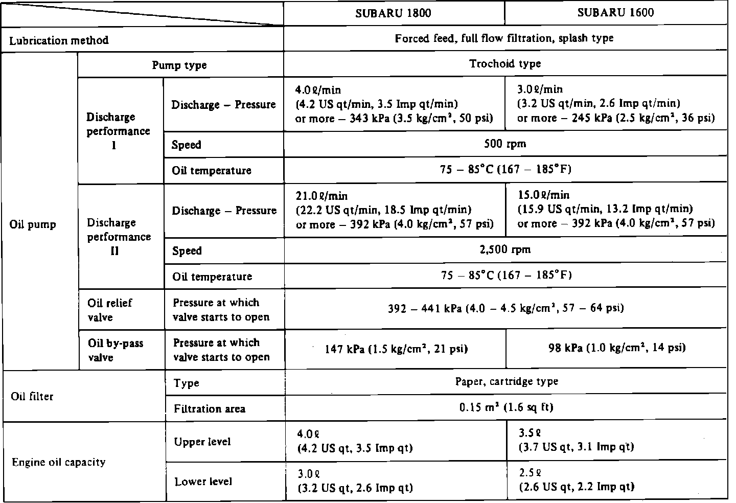 Lubrication System Specifications: