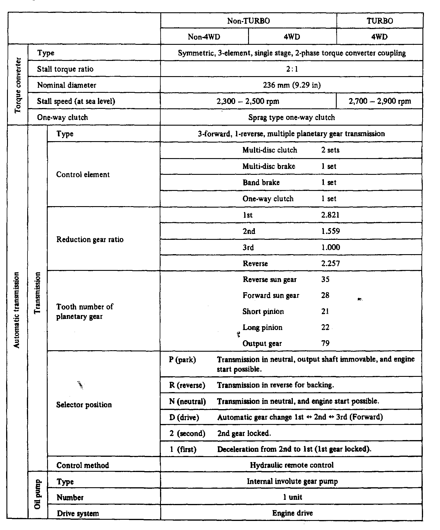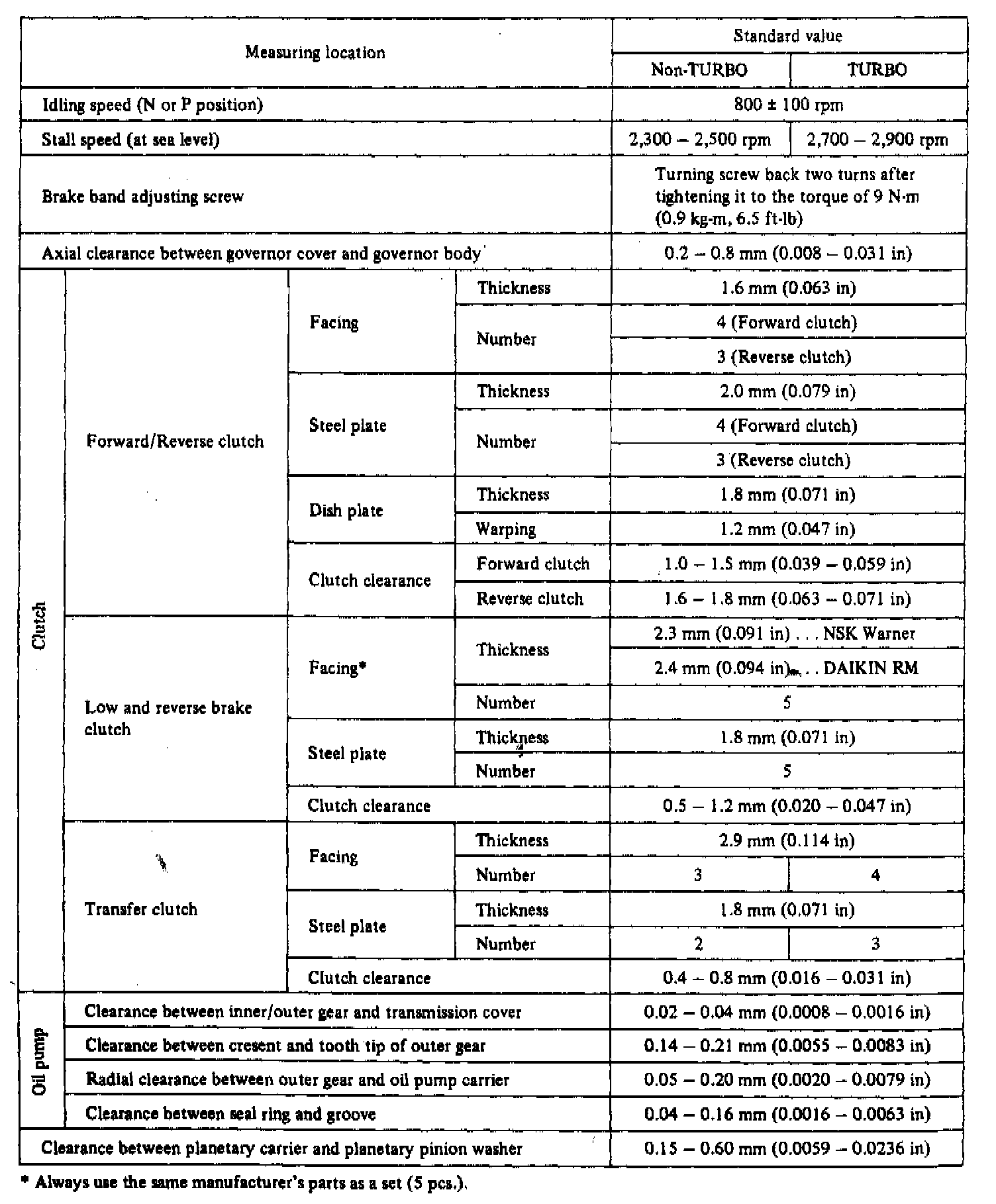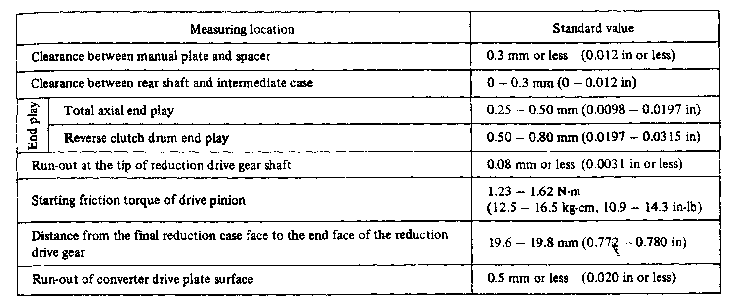 3-spd A/T, Transmission Standard Values: