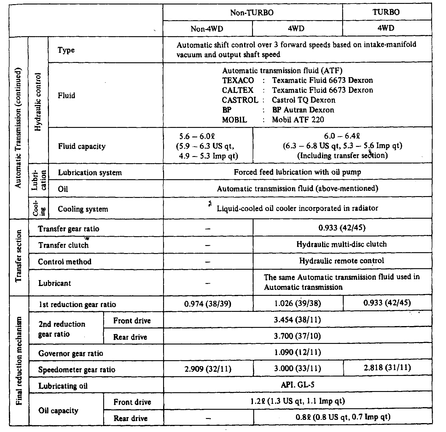 3-spd A/T, Transmission Service Data: