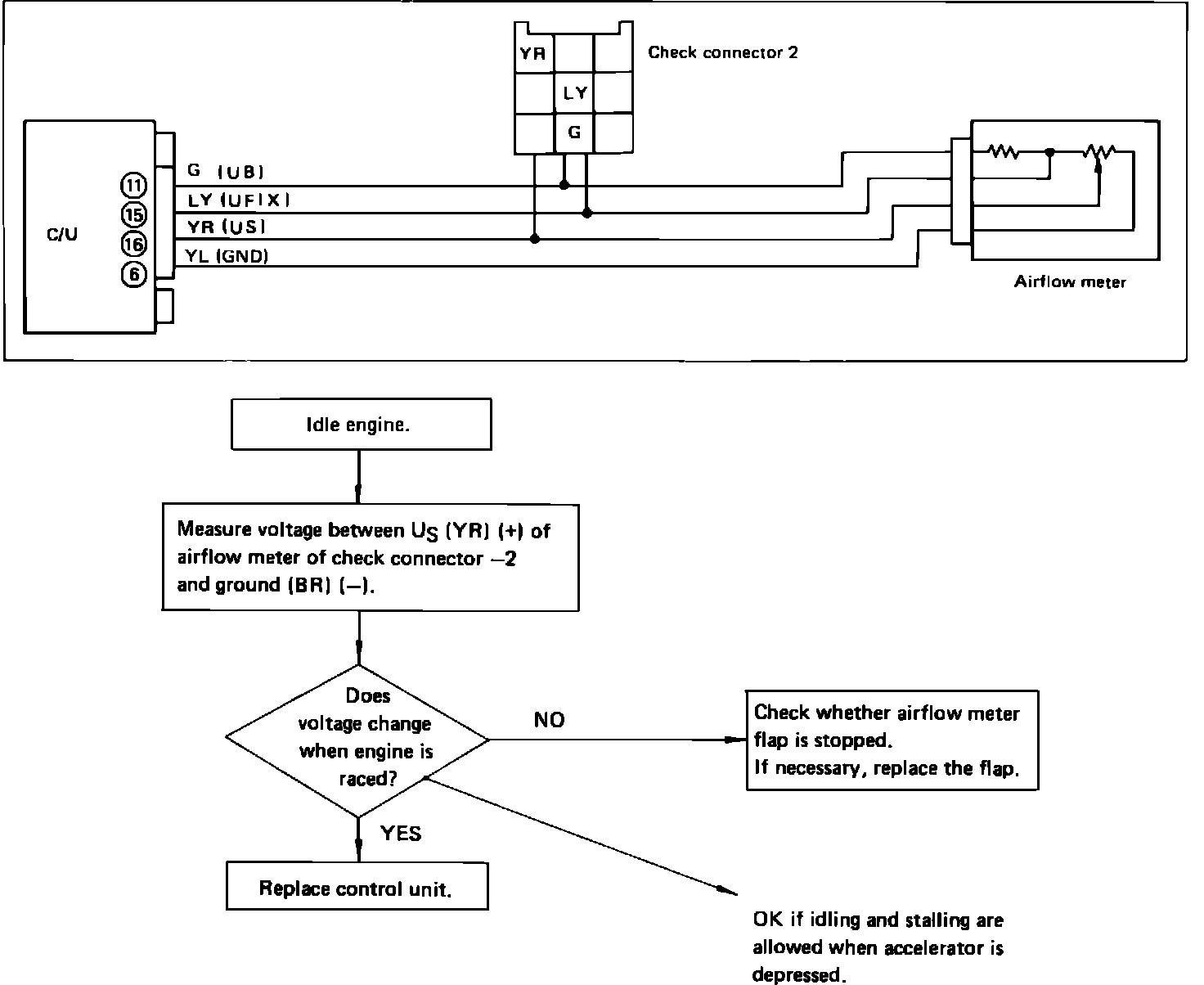Fig. 11 EGI system troubleshooting chart. Checking air flow meter circuit (trouble code 21).: