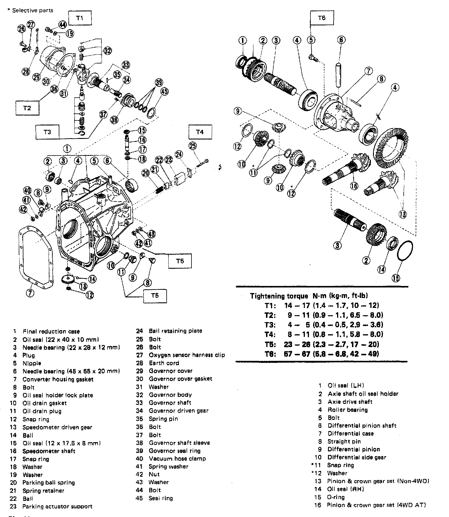 3-spd A/T, Final Reduction Case & Differential Gear: