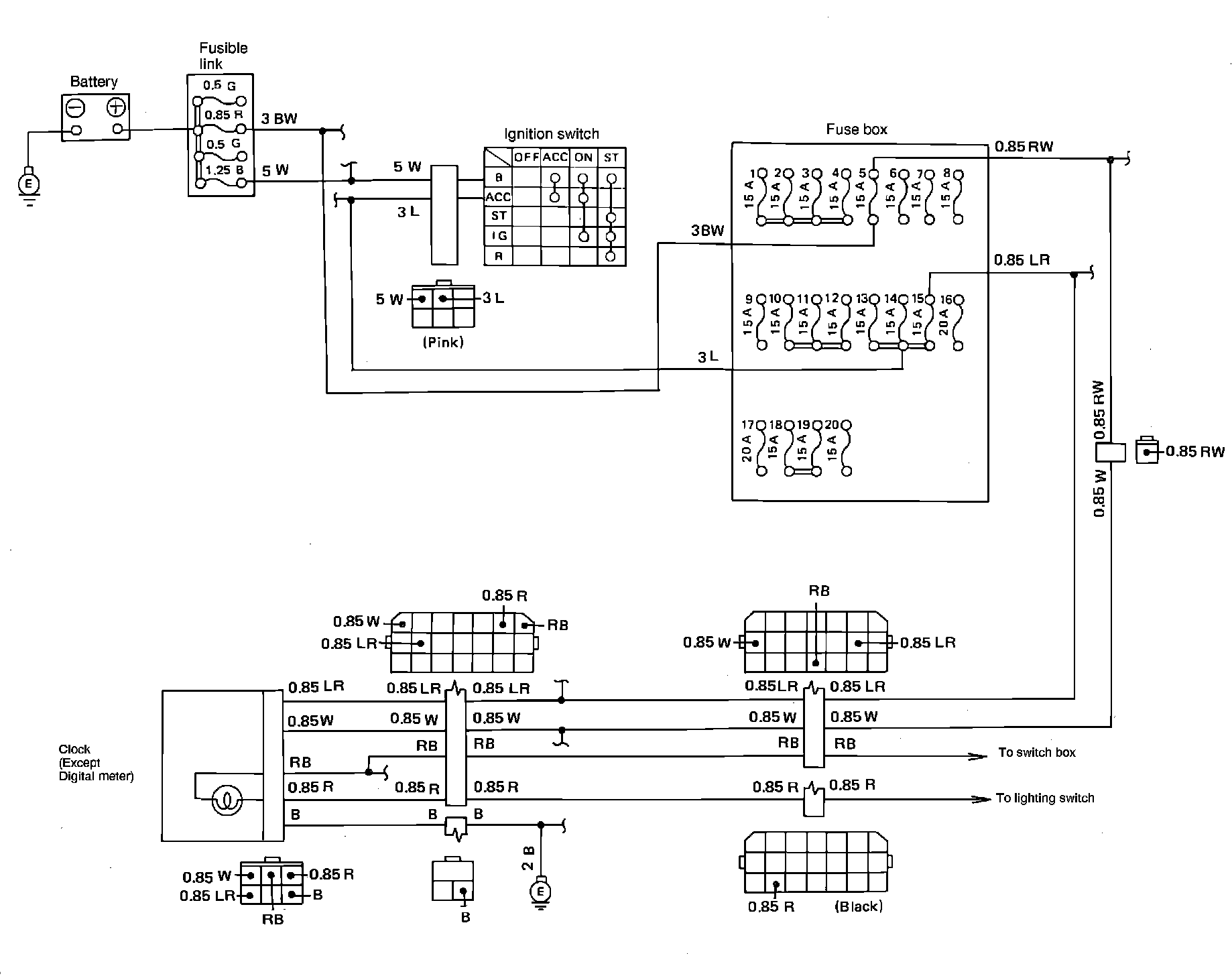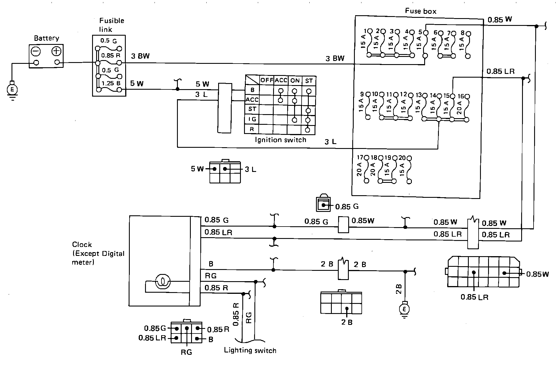 Fig. 25 Clock Wiring Circuit (Used W/Analog Instrument Panel). Models Exc. XT: