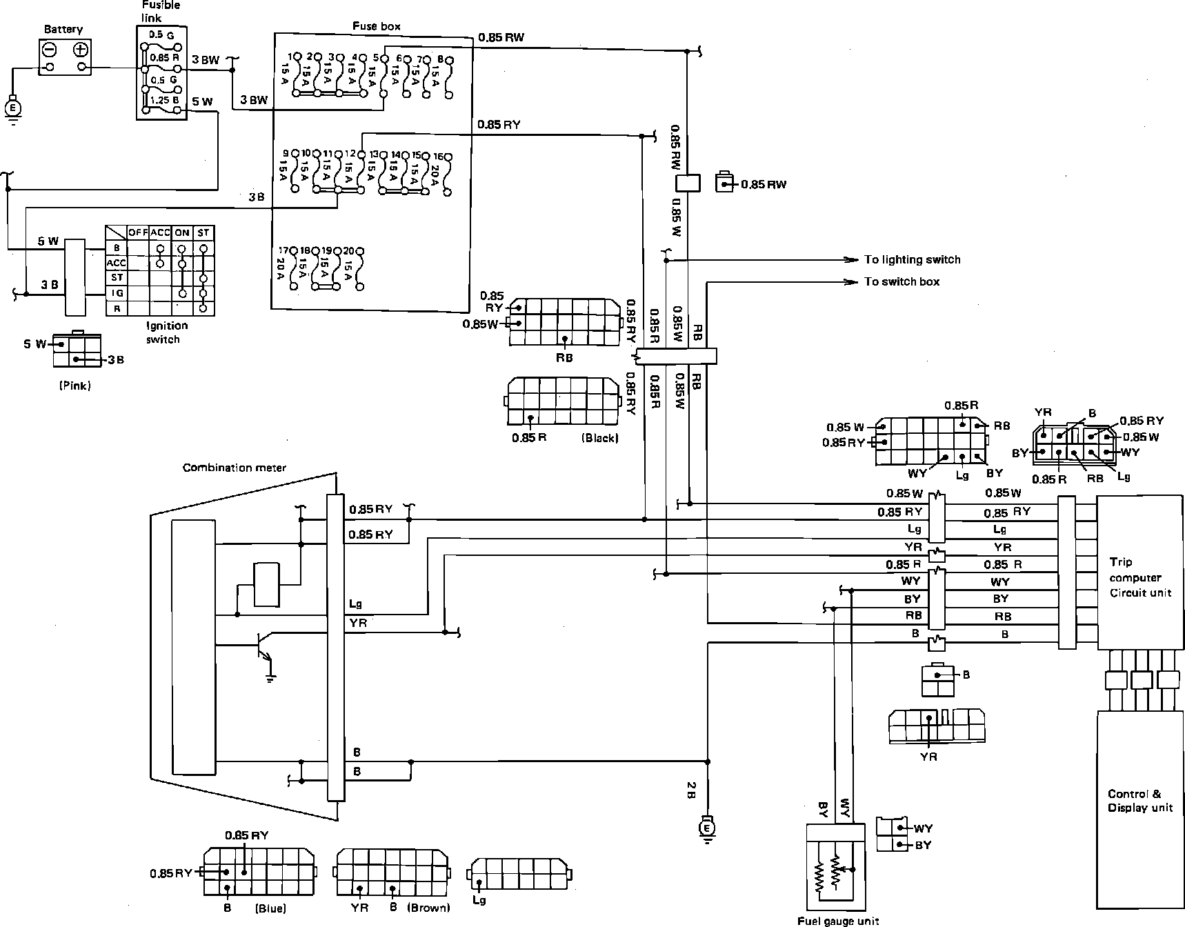 Fig. 102 Trip Computer Wiring Circuit. Models Exc. XT: