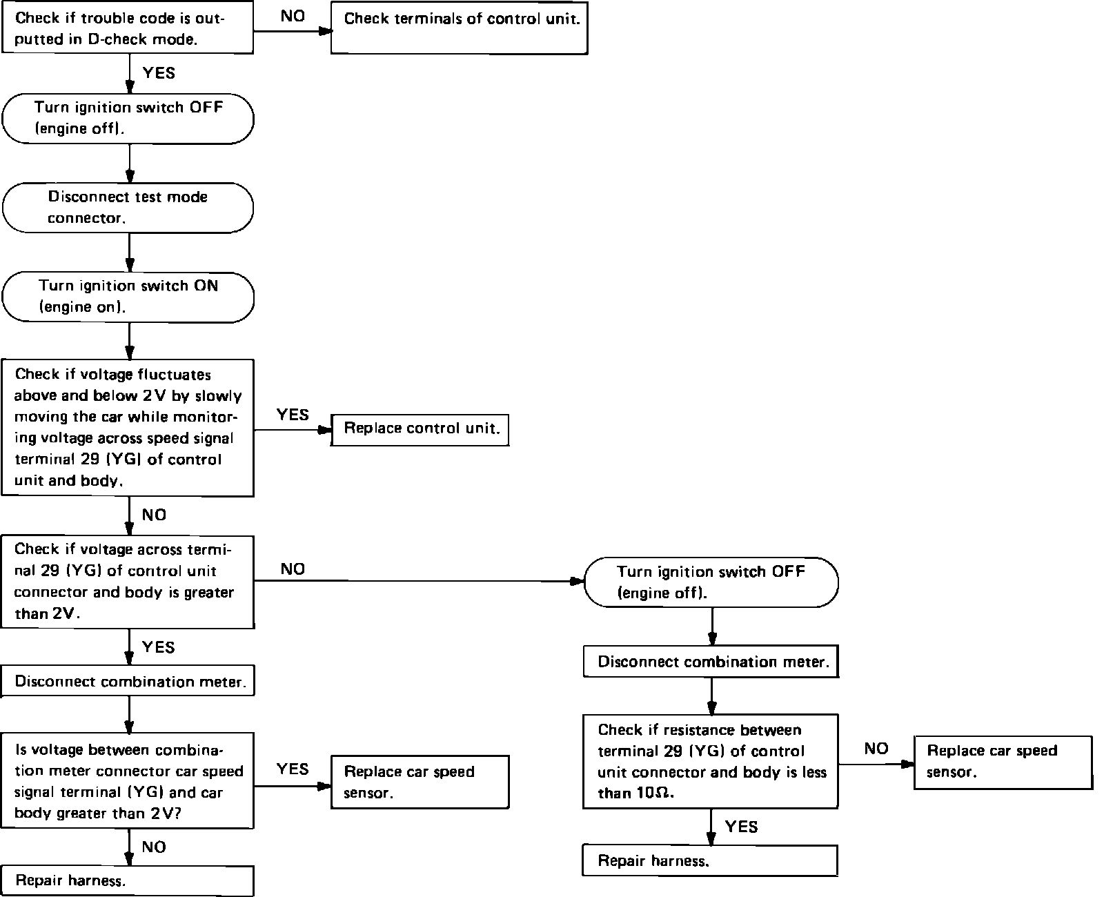 Fig. 45 EGI system troubleshooting chart. Speed sensor (trouble code 33).:
