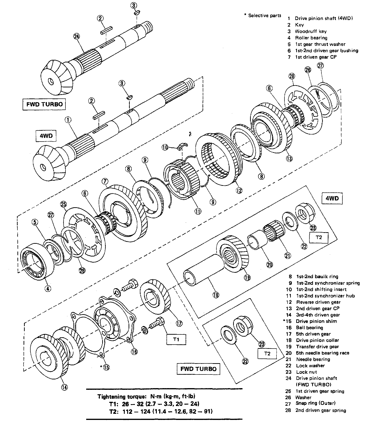 5-spd M/T, Drive Pinion Shaft (Selective 4WD & FWD TURBO):