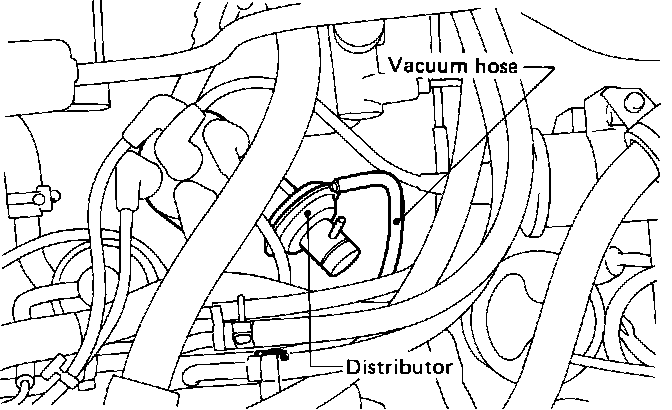2. Disconnect and plug distributor vacuum hose(s). On turbocharged vehicles, disconnect black connector (2-pole) between distributor and knock control unit.