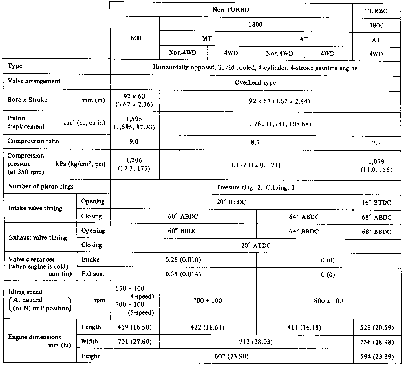Hatchback 4WD F4-1781cc 1.8L SOHC