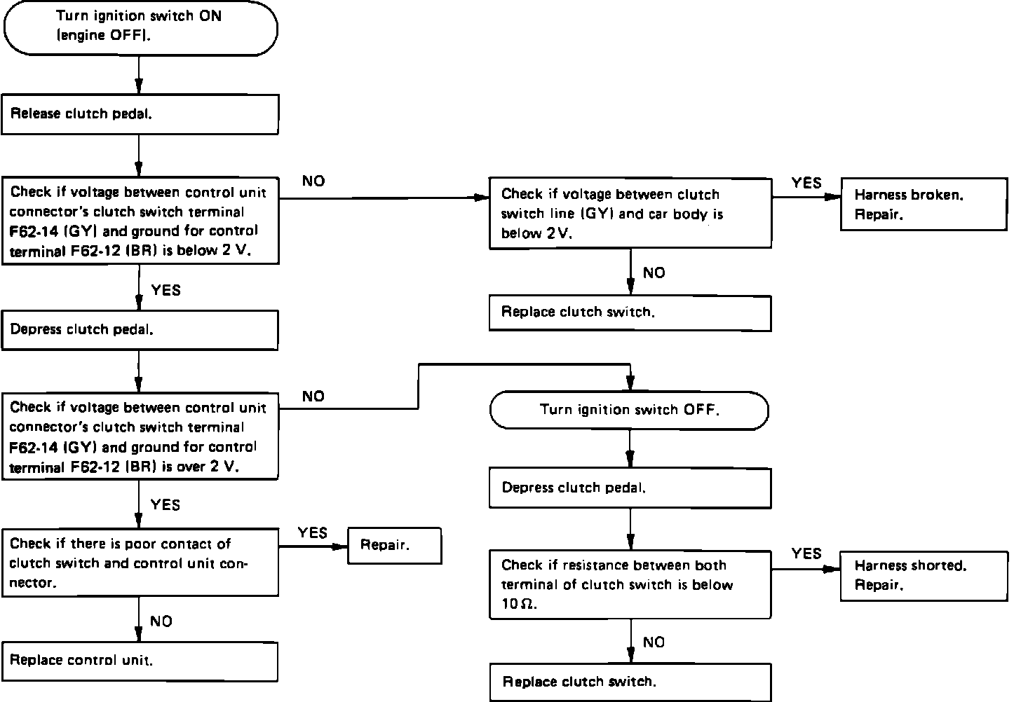 CLUTCH SWITCH DIAGNOSTIC CHART