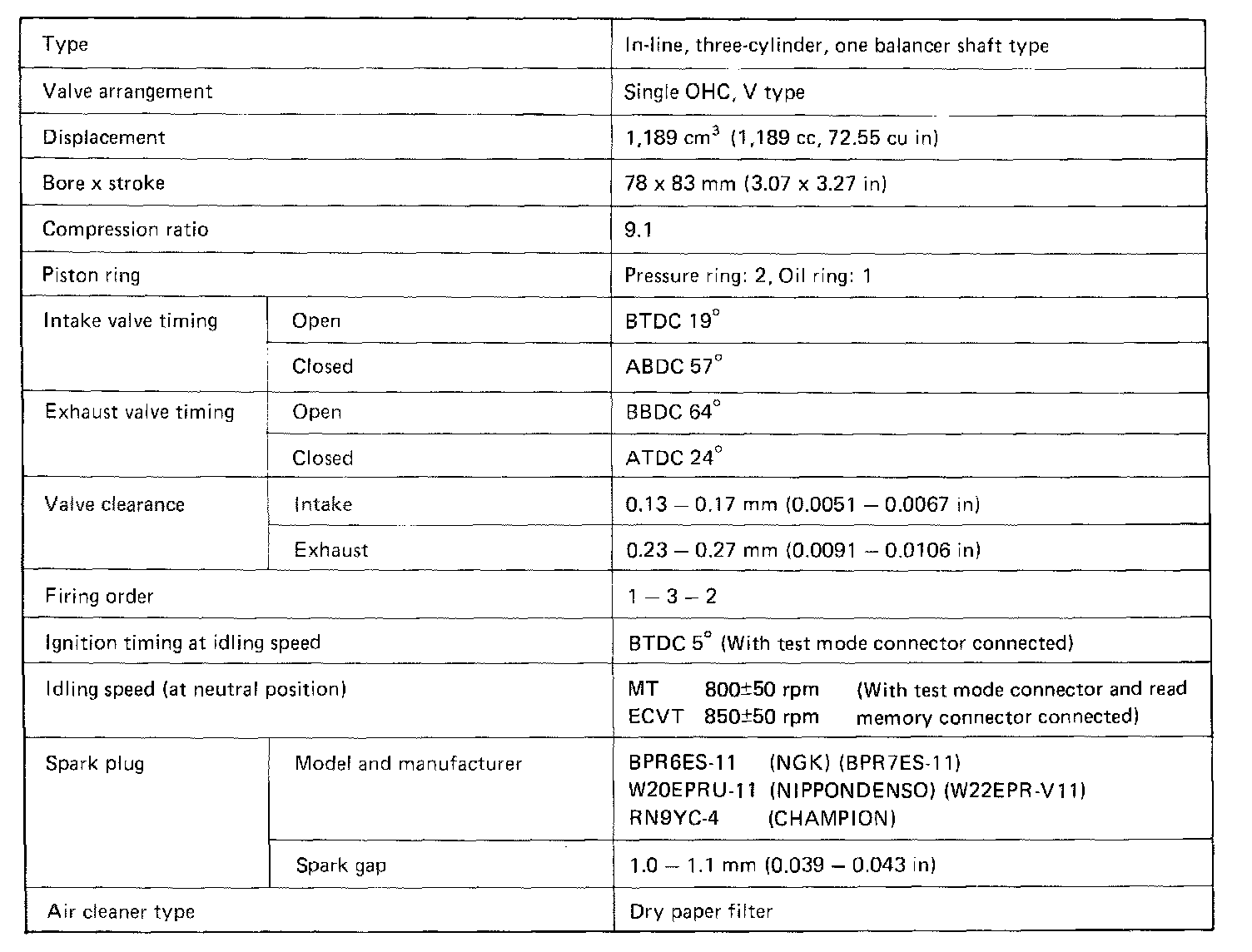 Engine Specifications