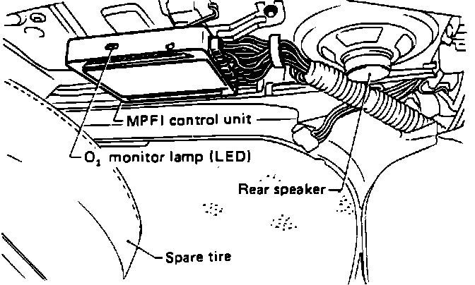 When the system is in "U-CHECK" mode and the "CHECK ENGINE" lamp is off, the O2 monitor lamp will flash the ID code. When the "CHECK ENGINE" lamp is on or when the system is in the "D-CHECK" mode, the monitor lamp will flash trouble codes.