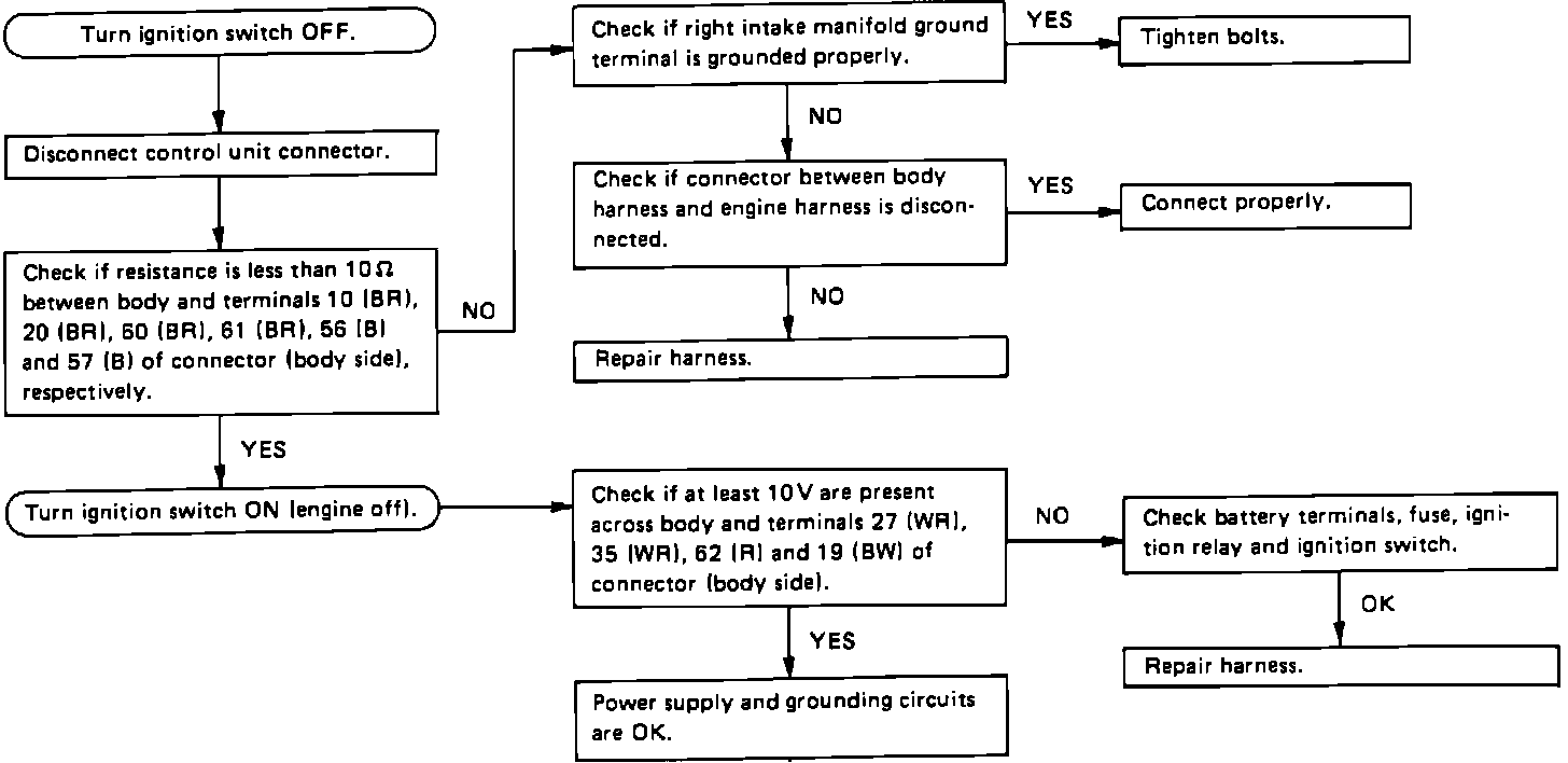 Apparent ECU problems can result from power supply and ground circuit problems. Therefore, these should be checked if a faulty ECU is suspected.