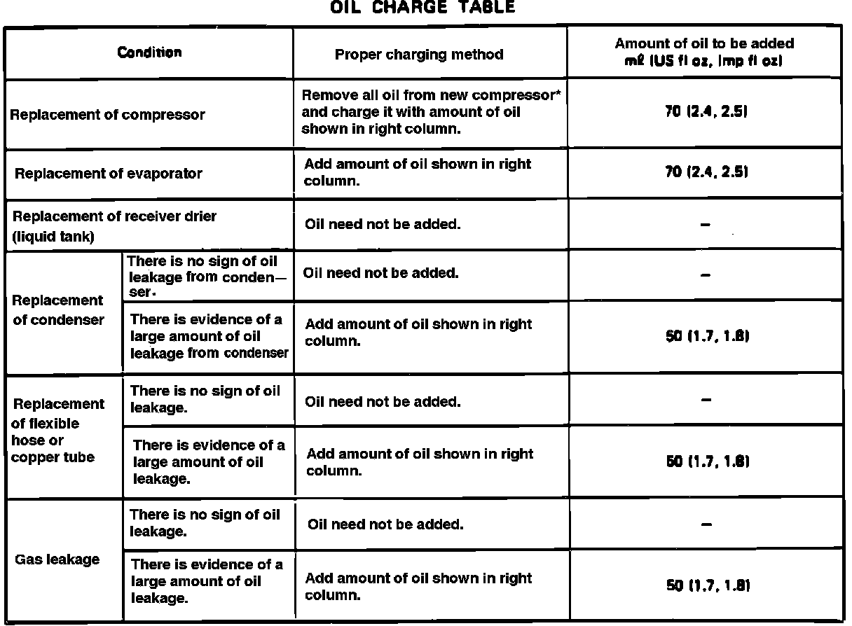 The oil used to lubricate the compressor circulates in the system with the refrigerant gas while the compressor is engaged. If a considerable amount of refrigerant gas is lost, the oil charge in the system will have checked. To check the oil level, proceed as follows: