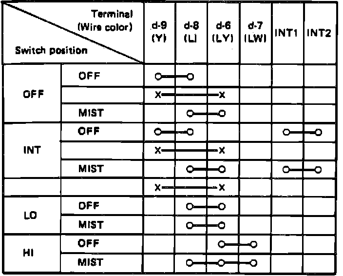 Windshield Wiper Switch Continuity TestFig. 3 Wiper Switch Continuity Test. 3 Door, 4 Door: