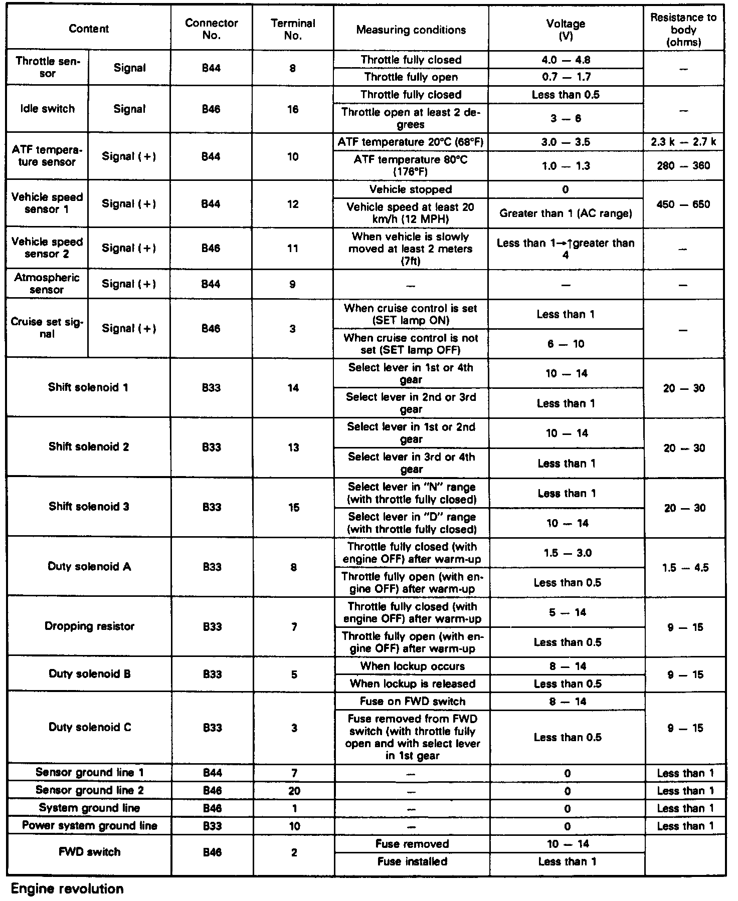Pinout Values and Diagnostic Parameters