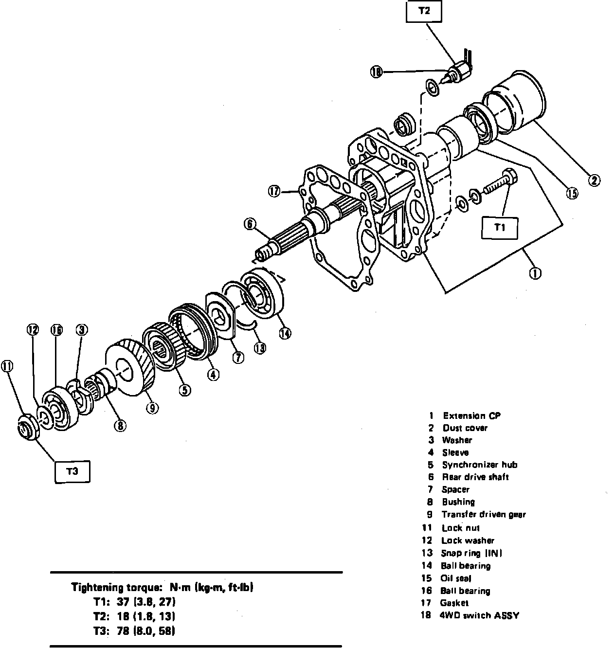 11. Remove extension and transfer gear assembly.