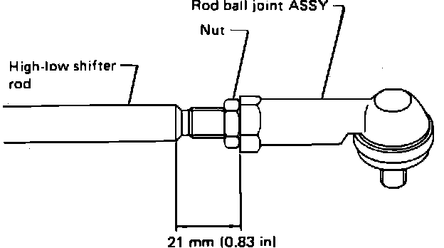 b. Remove high-low shifter rod assembly by loosening 8mm nut on front rod ball joint.