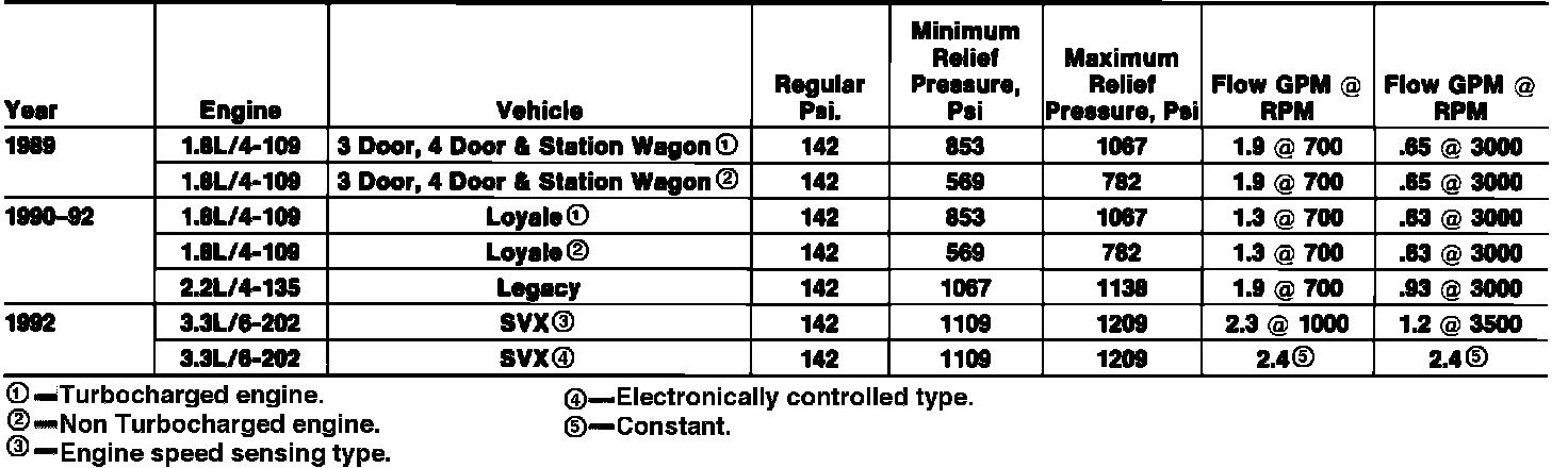 Power Steering Pressure Specifications: