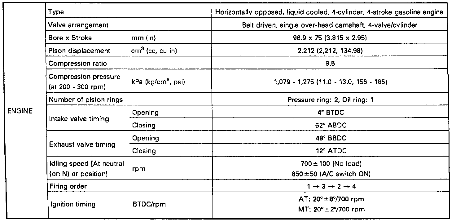 Legacy Sedan 4WD F4-2.2L SOHC