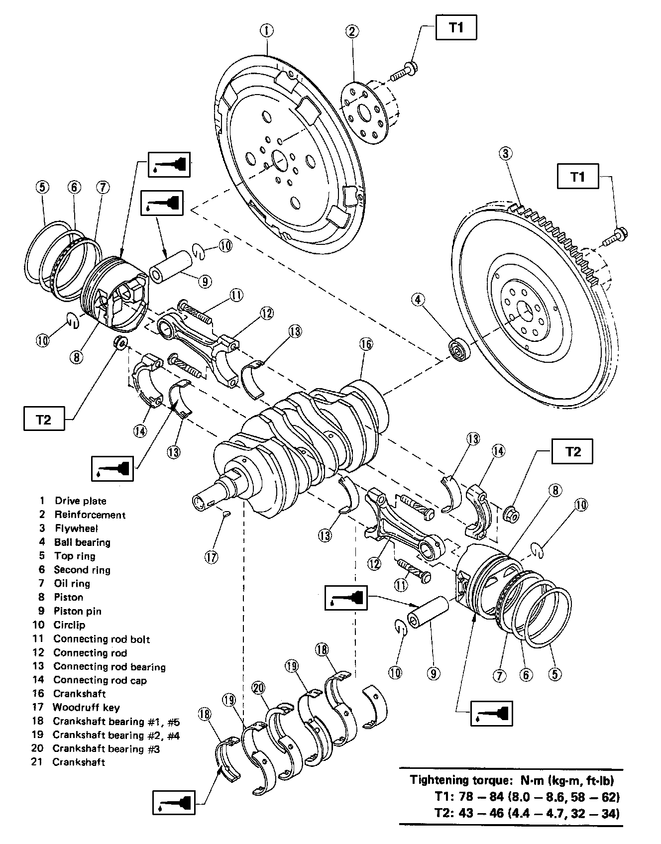 1. Apply a coat of engine oil to washers and bolt threads.