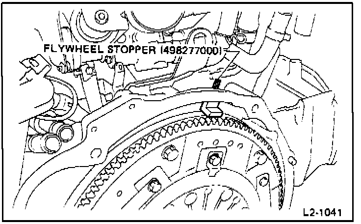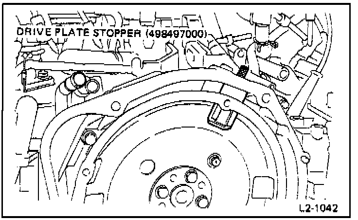 Special Tool: FLYWHEEL STOPPER (498277000)(manual transmission model) or DRIVE PLATE STOPPER (498497000) (automatic transmission model)