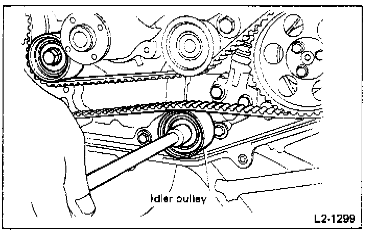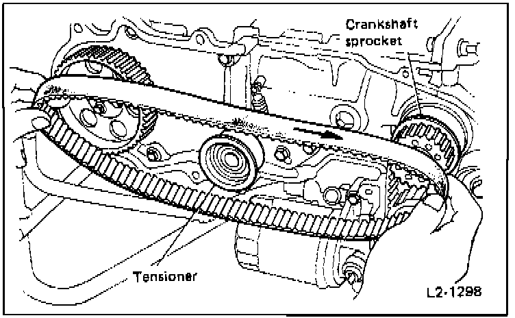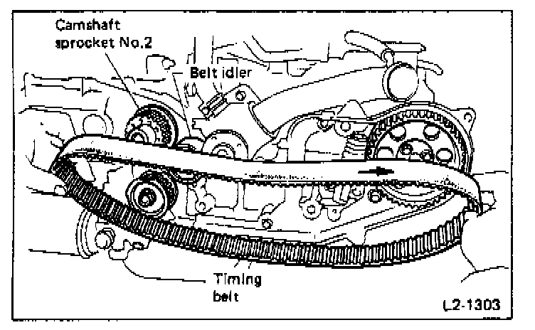 - Remove timing belt after marking rotating direction of belt.