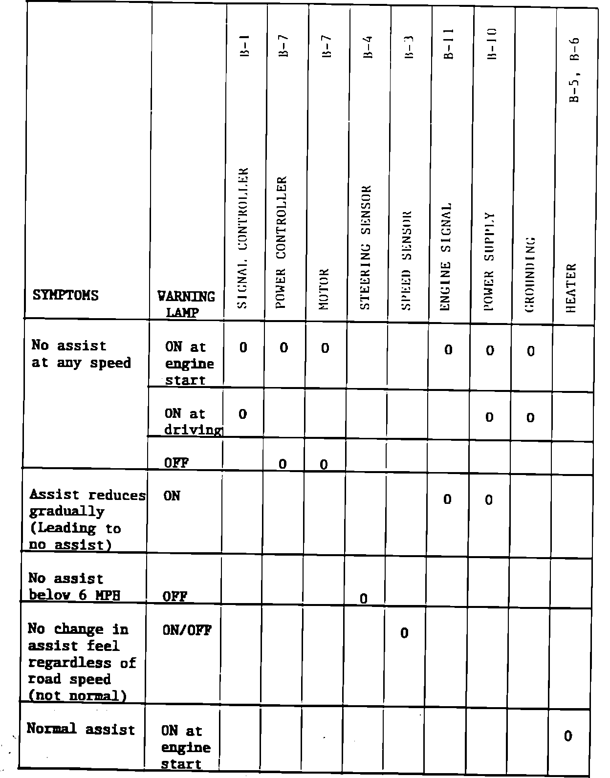 For example, should you be diagnosing a vehicle where the owner has complained of lack of assist at any speed while operating the vehicle without a warning lamp illumination, the following components should be checked closely according to the troubleshooting available in the Service Manual and the Service Bulletin containing Service Manual corrections.
