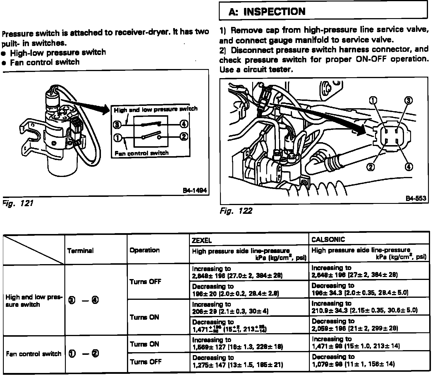 Refrigerant Pressure Sensor / Switch: Testing and Inspection