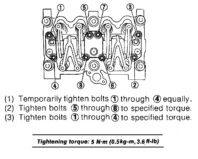 2. Then tighten all bolts to 69 N.m (7.0 kg-m, 51 ft-lb) in numerical order.