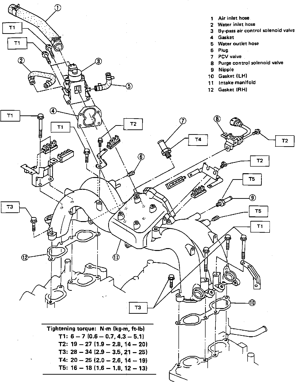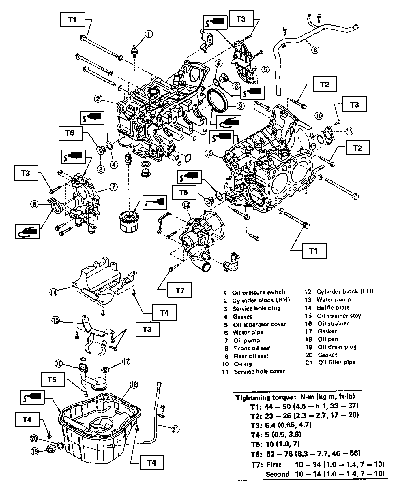 1. Tighten all bolts to 29 N.m (3.0 kg-m, 22 ft-lb) in numerical order.