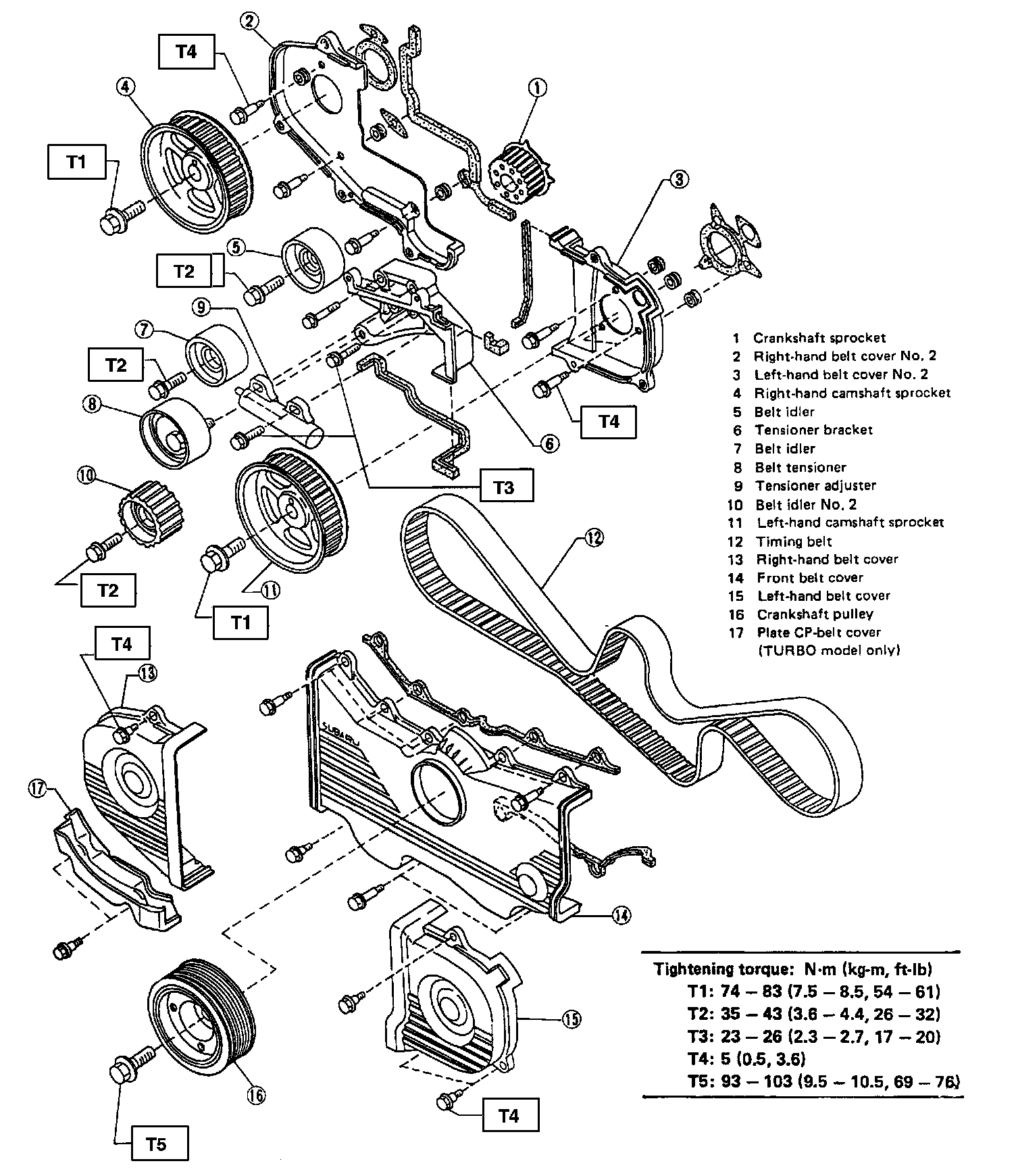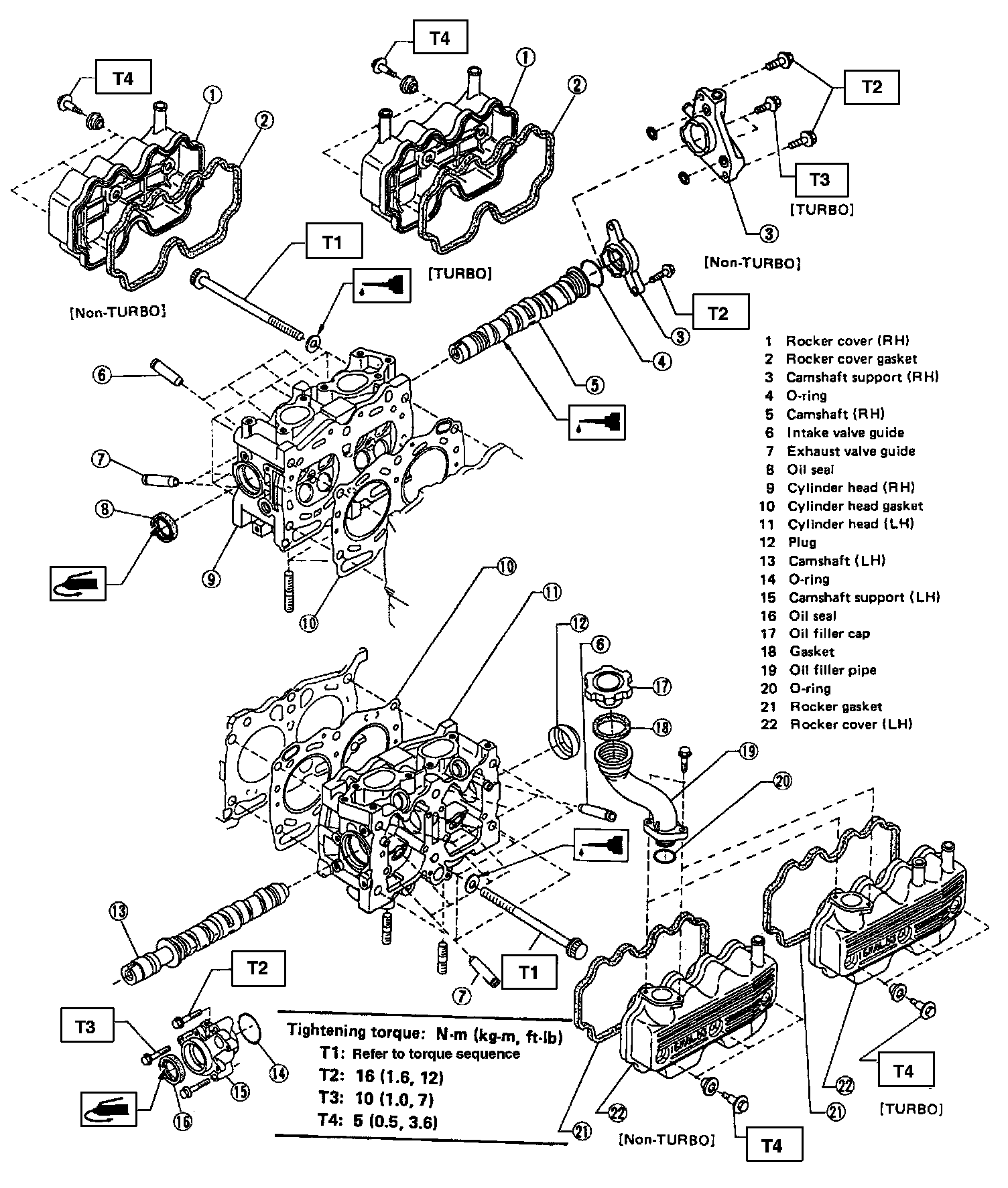 Note: Apply a coat of engine oil to washers and bolt threads.