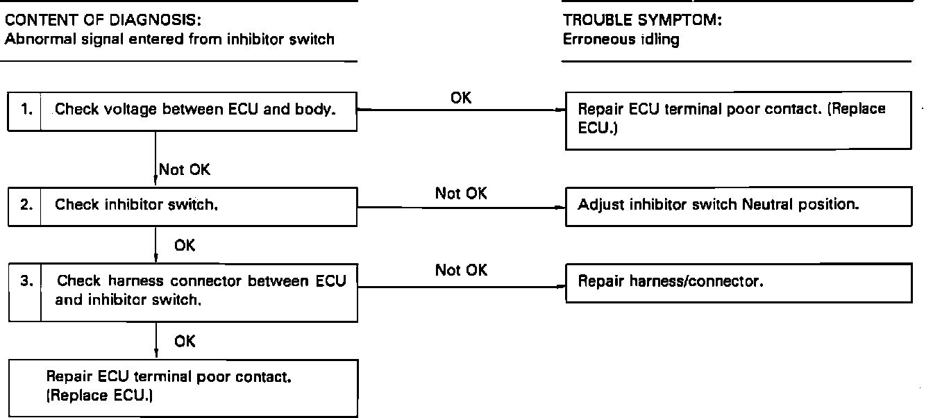 CHECK HARNESS BETWEEN ECU AND INHIBITOR SWITCH