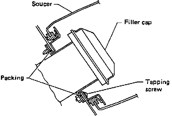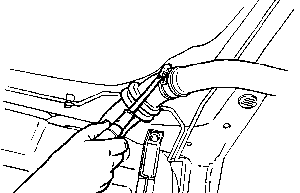 6. Install fastener with fuel filler pipe. Check to make sure that hoses and clamps have adequate clearance.