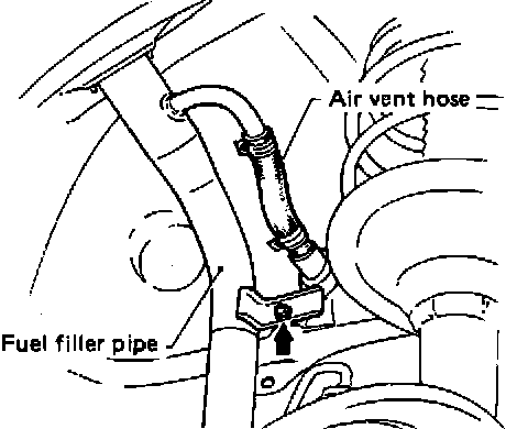 6. Remove fuel filler hose fasteners and air vent hose from fuel filler pipe.