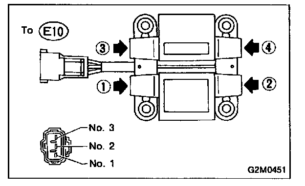 4. Measure power supply voltage between ignition coil connector terminal and body.