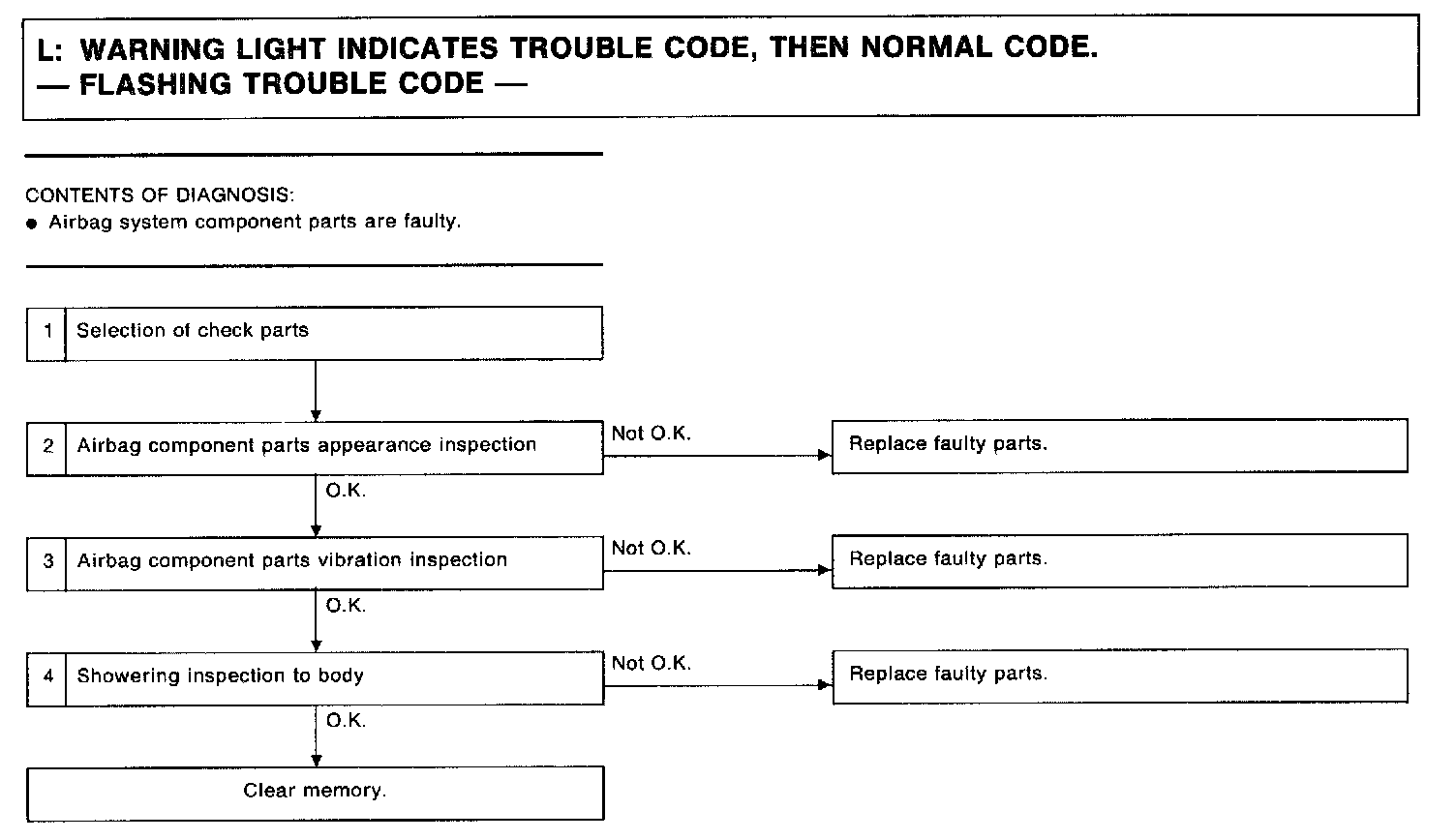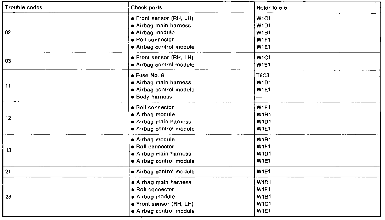 2) Select trouble code required to check airbag component parts from those listed in table and reproduce symptom.