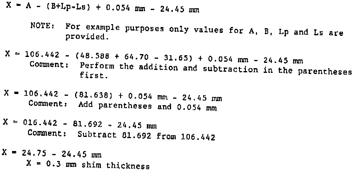 Use the completed alternate formula as an example when performing the mathematical formula to find the secondary pulley shim thickness. Attach this example with Service Bulletin 16-34-89, Dated 07-05-89 for future reference.Alternate Formula for Pulley Alignment