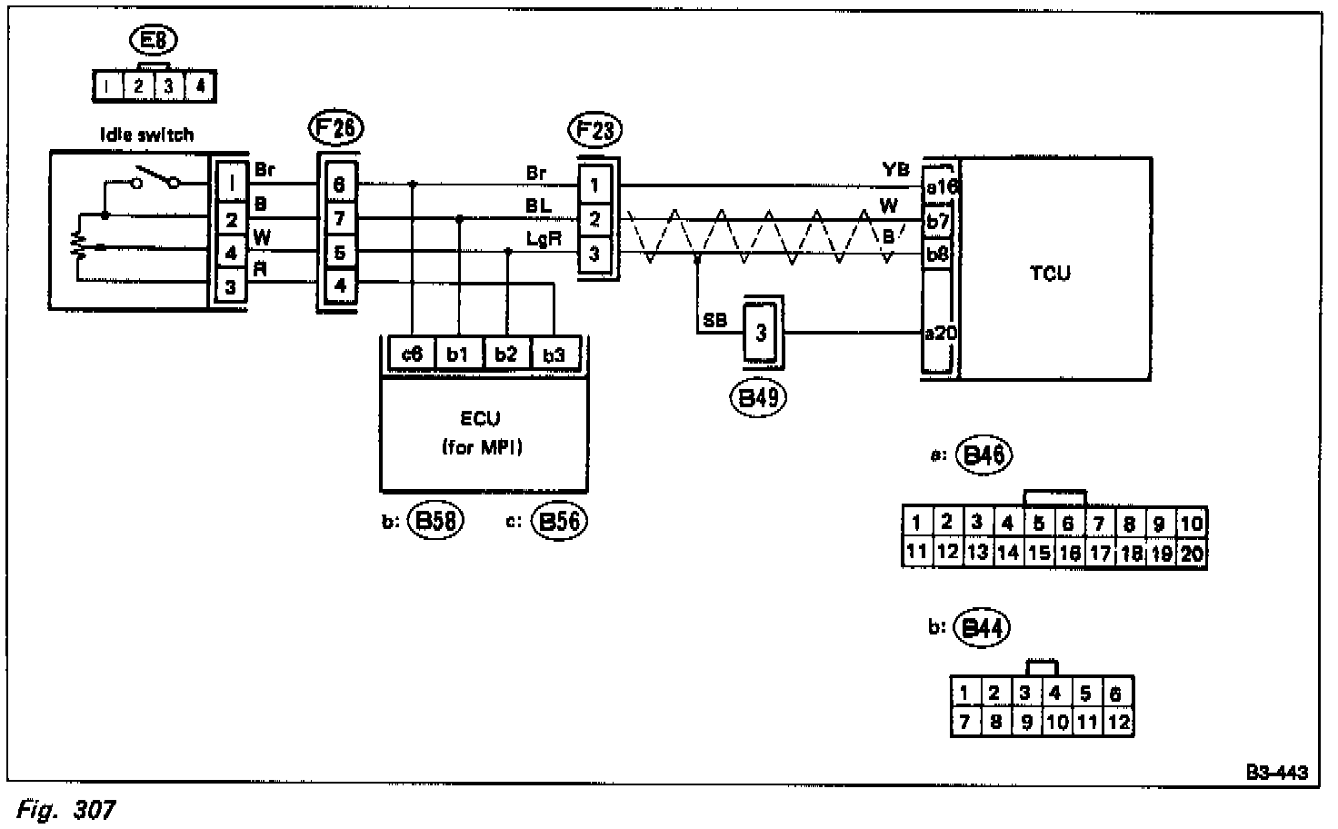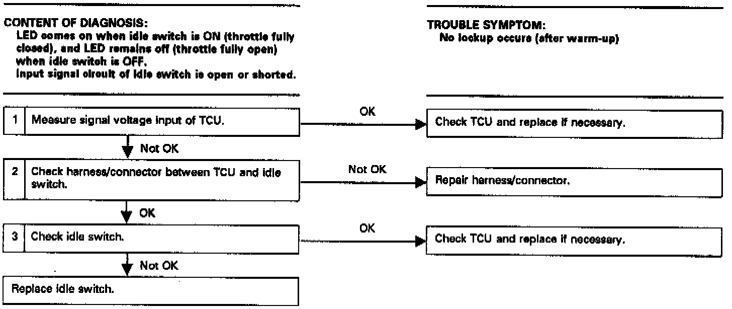 2. CHECK HARNESS/CONNECTOR BETWEEN TCU AND IDLE SWITCH.