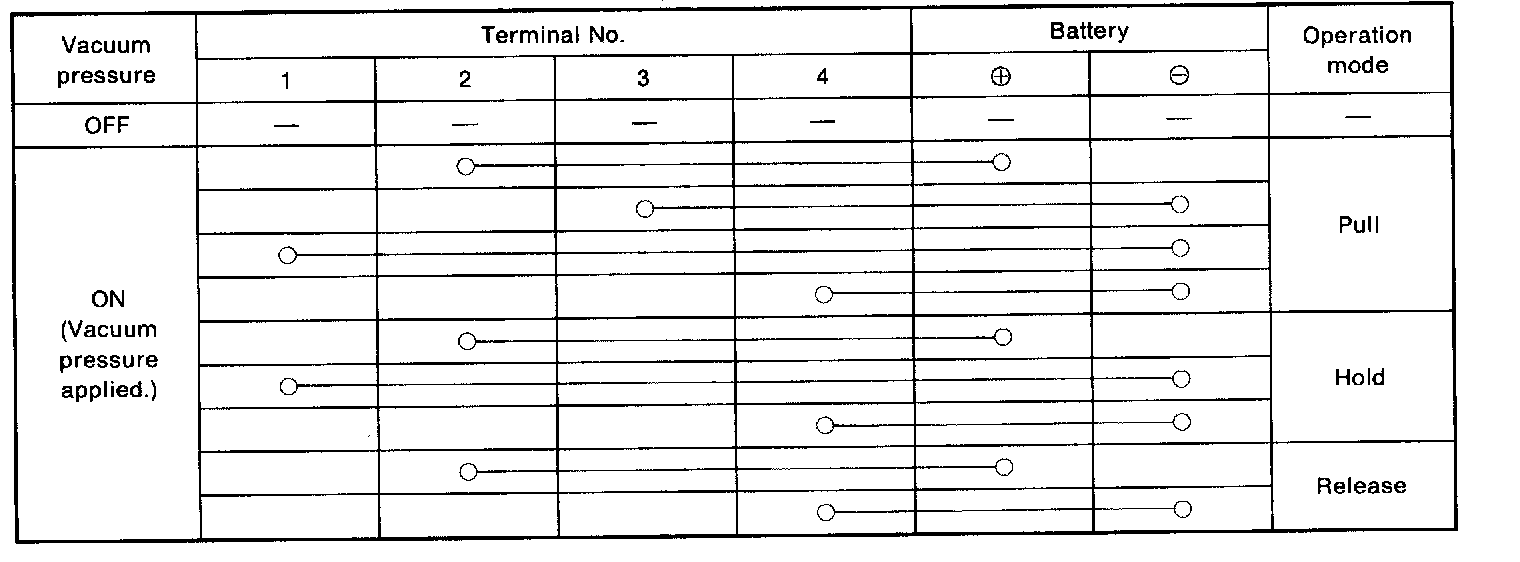 4. Connect battery to each terminal and check cable movement when vacuum pressure is applied by vacuum pump.