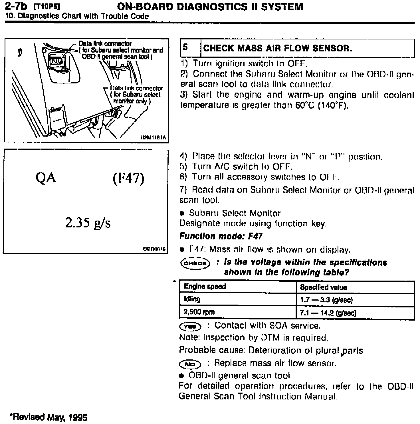 Included are four (4) correction pages for 1995 Impreza, Book 3, MSA 5MA511A, 2-7b [T502] Page 62 , 2-7b [T10 P5] Page 156, 2-7b [T10Y1] Page 172 and 2-7b [T10Y4] Page 173. Please remove existing pages and replace with the revise pages dated May, 1995.
